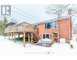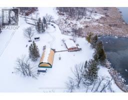 Welcome to this charming bungalow set on 1.17 acres with direct frontage on the Scugog River, offering a peaceful setting. The main floor features a bright kitchen with hardwood floors and a walkout to the yard, a dining room with access to the deck, and a comfortable living room with a gas fireplace. Three bedrooms and a 4-piece bath complete the level. The fully finished walkout basement expands your living space with a cozy recreation room featuring a gas stove and bar area, an office, and a combined laundry/utility room. Outside the property impresses with a durable steel roof, a Generac system installed in 2024, and a 35' x 60' Quonset Hut with a 14' door, ideal for storage, hobbies, or equipment. Enjoy direct waterfront access and the privacy of a spacious lot with still being minutes to Lindsay and all amenities. (id:56167)
