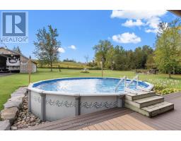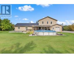 This home was designed for entertaining warm, inviting, and ready for gatherings. Enjoy morning coffee on the front porch, host dinner parties on the back deck, or spend summer evenings around the firepit. The kitchen flows seamlessly to a partially covered & screened TREX deck with a solar-heated pool, hot tub, and plenty of outdoor living space. Inside, the main floor features multiple dining areas, a cozy living room with fireplace, a home office nook, foyer, and 2-pc bath. Upstairs, the primary suite includes a 3-pc ensuite, glass shower, and his & her closets, plus two additional bedrooms and a 5-pc bath. The lower level offers even more living space with a rec room, bar, wood fireplace, 4th bedroom, 4-pc bath, laundry, and storage. For the storage enthusiast, this property is a dream with ample parking for cars & RVs, a drive-thru attached double garage, plus a detached garage for all the extras. Your country escape awaits. (id:56167)