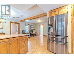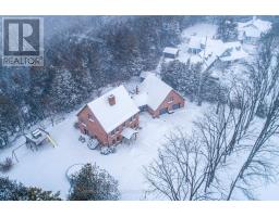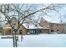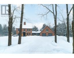 Set on over two private acres just minutes from Lindsay, this 2 1/2 storey home offers space, versatility, and exceptional multi-generational potential. The main floor features a welcoming foyer, sun-filled sunroom with wood stove and walkout to the yard, a 2-piece bath, and a laundry room with walkout to the porch. The eat-in kitchen anchors the home and flows to the family room, formal dining room with walkout to the patio, and a spacious living room. Hardwood floors run throughout much of the main level, adding warmth and character. The second floor offers a primary bedroom with walk-in closet and a 3 piece ensuite, three additional bedrooms with hardwood floors, a full 4-piece bath, and a generous loft space ideal for a home office, gym, or playroom. Above the double garage, you'll find a separate living space perfect for extended family or guests, complete with an eat-in kitchen, living room with walkout to a private deck, a 4-piece bath, and a bedroom. Outside, enjoy a large circular driveway, expansive deck, mature landscaping, garden shed, all while being just a short drive to town amenities. (id:56167)