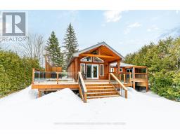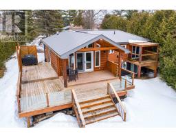 Welcome to your own slice of waterfront living on beautiful Mitchell Lake. Set on a generous 0.83 acre lot with 86.5 feet of shoreline, this property offers the perfect blend of privacy, space, and relaxed lakeside living. Whether you're looking for a year-round home or weekend retreat, this one delivers. The main level features hardwood flooring throughout and a functional layout designed to take full advantage of the setting. The kitchen and dining area combine seamlessly, with a walkout to the deck overlooking the water, ideal for morning coffee or evening entertaining. The living room is warm and inviting with a fireplace as its focal point, while an office provides flexible space for working from home or additional guest use. Two bedrooms are located on the main floor, including one with a 2-piece ensuite, along with a 4-piece bath and welcoming foyer. The partially finished walkout basement offers excellent potential to expand your living space. Featuring a rec room area with propane fireplace, walkout to the patio, an additional bedroom, and utility space, it's ready for your finishing touches. Outside, the property truly shines. Enjoy a detached two-car garage, large circular driveway with ample parking, steel roof, drilled well, and private dock for easy access to the water. With plenty of room to gather, relax, and enjoy the outdoors, this is lakeside living at its best. (id:56167)