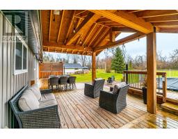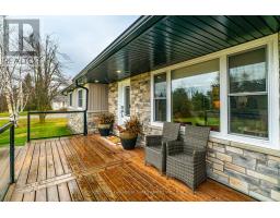 Welcome to this spacious 3+2 bedroom bungalow set on just over an acre, offering the privacy of country living just outside of Woodville. The main floor features a bright living room with a propane fireplace, a modern kitchen with quartz countertops, a centre island, and a walkout to the large covered deck, seamlessly combined with the dining area. A 5-piece bath serves the level, along with a generous primary bedroom boasting wall-to-wall closets and a walkout to the deck, two additional bedrooms, and a family room with yard access and a propane stove. The finished lower level adds exceptional flexibility with two additional bedrooms, a 4-piece bath with laundry, a spacious rec room with an electric fireplace, and ample storage and utility space. Outside, enjoy 1.04 acres of open land complete with a 5.8m x 5.5m detached garage, above-ground pool, metal roof, fire pit area, and a wide covered deck ideal for year-round entertaining. A fantastic rural property with room for the whole family! (id:56167)