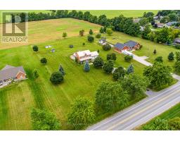 Escape to country living in this elegant 2-storey brick home, offering 4 spacious bedrooms and 2.5 baths. The main floor features a large kitchen with a centre island, perfect for family gatherings and a laundry room. An office on the main floor provides an ideal space for working from home. Upstairs, the primary bedroom boasts a luxurious 4-piece ensuite, complemented by three additional bedrooms and another full bathroom. The finished basement is a recreational haven with a large rec room, home gym as well as a utility room, cold cellar, and multiple storage areas. Set on a beautiful 2.04 acre lot, this property includes a large paved driveway and an above-ground pool for summer fun. Property also boasts an insulated and heated garage. Enjoy the peace and tranquility of country life with all the comforts of a modern home. (id:56167)