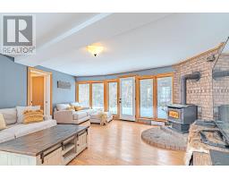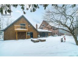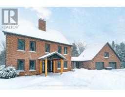Set on over two private acres just minutes from Lindsay, this 2 1/2 storey home offers space, versatility, and exceptional multi-generational potential. The main floor features a welcoming foyer, sun-filled sunroom with wood stove and walkout to the yard, a 2-piece bath, and a laundry room with walkout to the porch. The eat-in kitchen anchors the home and flows to the family room, formal dining room with walkout to the patio, and a spacious living room. Hardwood floors run throughout much of the main level, adding warmth and character. The second floor offers a primary bedroom with walk-in closet and a 3 piece ensuite, three additional bedrooms with hardwood floors, a full 4-piece bath, and a generous loft space ideal for a home office, gym, or playroom. Above the double garage, you'll find a separate living space perfect for extended family or guests, complete with an eat-in kitchen, living room with walkout to a private deck, a 4-piece bath, and a bedroom. Outside, enjoy a large circular driveway, expansive deck, mature landscaping, garden shed, all while being just a short drive to town amenities. (id:56167)