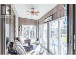 This stately custom built brick bungalow is one of a kind and sits on one of few double lots in the highly desired Port 32 neighbourhood. Impressive curb appeal thanks to the expansive corner lot, extensive landscaping, stamped concrete driveway & walkways, and coveted covered front porch. The home is aprx. 1460 sqft on both levels with 3 bedrooms and 3 full bathrooms. The beautiful kitchen was completely remodelled in 2019 including removing walls to open up the space into the dining & living rooms. Crown moulding was added as well, no expense spared. Off the kitchen is the sunroom and composite deck. The master bedroom has an ensuite and walk in closet. The walkout basement features a large family room, wet bar with a fridge, and both propane and electric fireplaces. There is also a hobby room / den, a large laundry room, and plenty of storage space. Two car attached garage with a workbench & cabinets and stairs to the basement. The spacious grounds, with inground sprinklers, are meticulously maintained and have a park-esque feel thanks to the double lot and mature trees. Pigeon Lake is just across the road. Membership to the Shore Spa Clubhouse is included featuring tennis & bocce courts, a marina, swimming pool, horseshoes, billiard tables, exercise room, library, and more! (id:56167)
