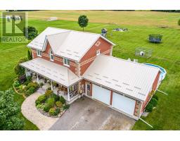 Escape to country living in this elegant 2-storey brick home, offering 4 spacious bedrooms and 2.5 baths. The main floor features a large kitchen with a centre island, perfect for family gatherings and a laundry room. An office on the main floor provides an ideal space for working from home. Upstairs, the primary bedroom boasts a luxurious 4-piece ensuite, complemented by three additional bedrooms and another full bathroom. The finished basement is a recreational haven with a large rec room, home gym as well as a utility room, cold cellar, and multiple storage areas. Set on a beautiful 2.04 acre lot, this property includes a large paved driveway and an above-ground pool for summer fun. Property also boasts an insulated and heated garage. Enjoy the peace and tranquility of country life with all the comforts of a modern home. (id:56167)
